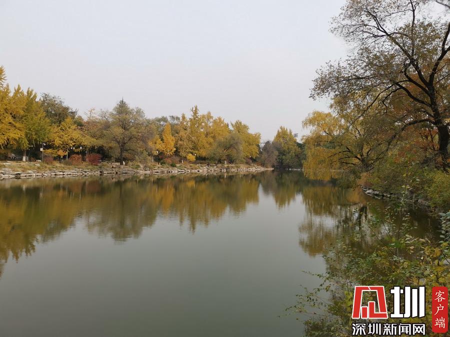 未名湖畔紅葉多姿、美麗寧靜。