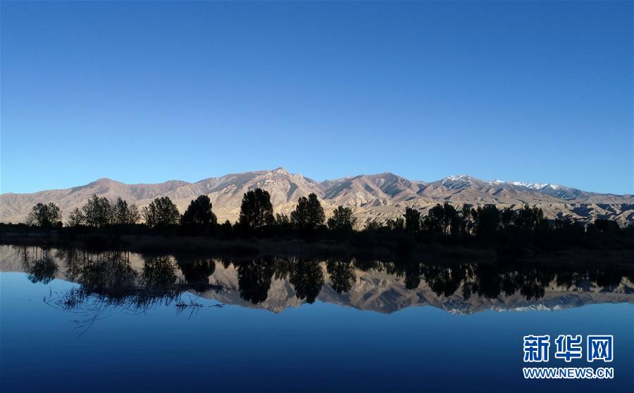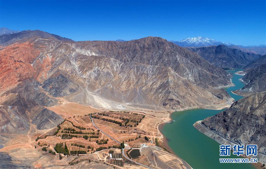 在青海貴德,千姿湖景區(qū)內群山與湖水相映成畫(4月16日無人機拍攝)。新華社記者張宏祥攝