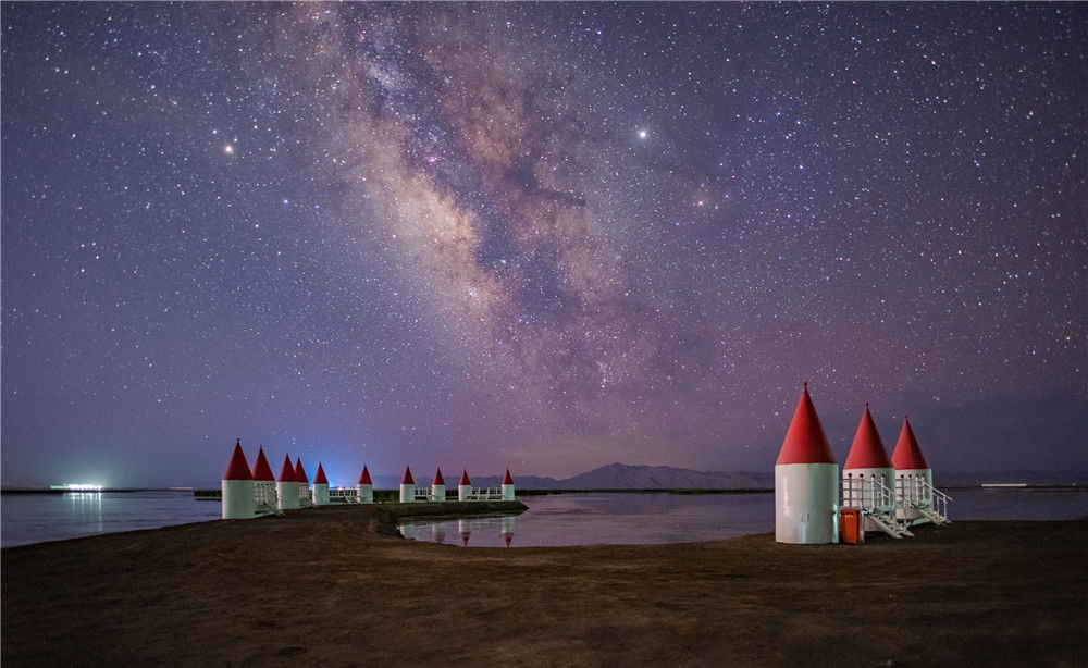2019年7月28日,青海海西,大柴旦礦場沼澤地觀景平臺拍攝的大柴旦銀河。