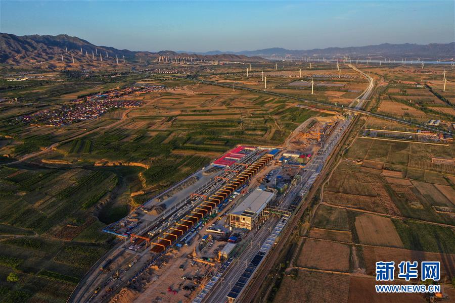 5月28日無人機拍攝的建設中的京張高鐵懷來站。新華社記者邢廣利攝