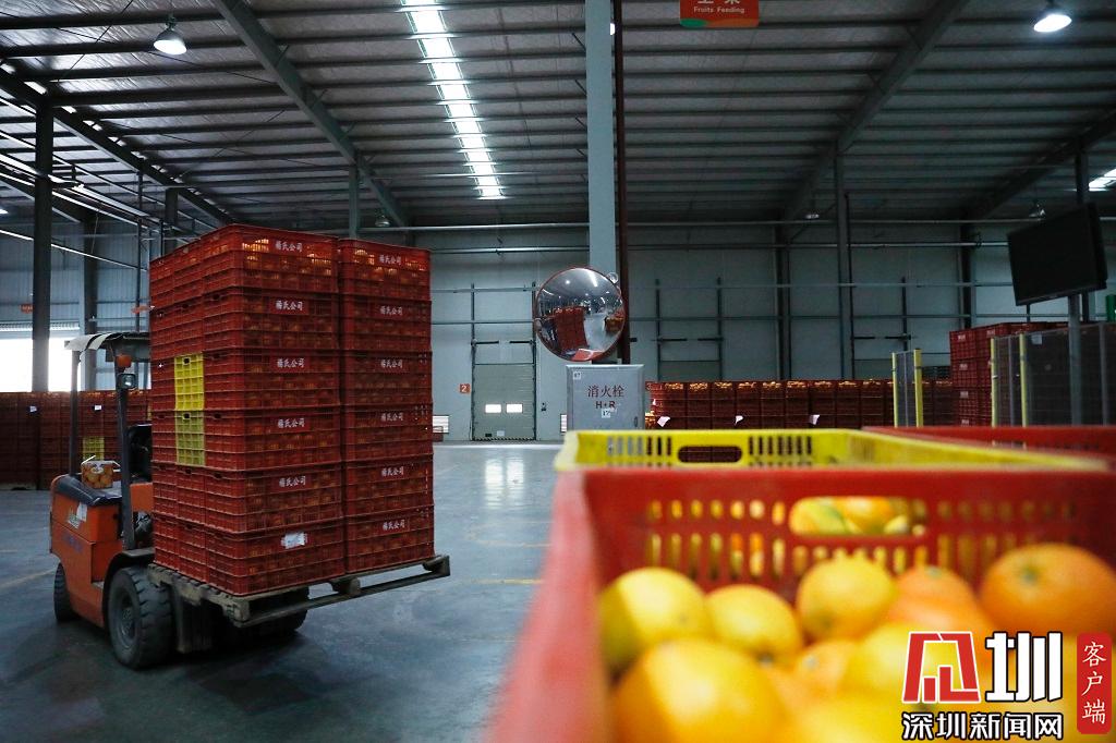 一輛叉車準備運送臍橙。