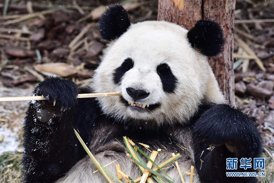 11月29日,在西寧熊貓館內(nèi),兩只大熊貓在吃竹子。 當日,青海省西寧市迎來降雪,西寧熊貓館四只“萌寵”大熊貓在雪天里享受著吃竹子的樂趣。據(jù)了解,大熊貓生活的適宜溫度在26攝氏度至零下5攝氏度之間,冬季氣溫低于零下5攝氏度時,場館會啟用保暖設施。 新華社記者 吳剛 攝