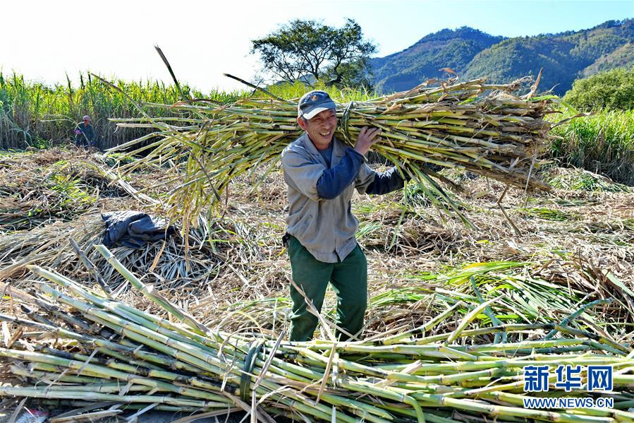 12月7日,松溪縣鄭墩鎮(zhèn)萬前村蔗農在收割“百年蔗”。近期,福建省松溪縣鄭墩鎮(zhèn)萬前村特色甘蔗品種“百年蔗”進入采收期,當?shù)剞r民砍蔗制糖,一派繁忙景象。近年來,萬前村大力發(fā)展蔗糖生產,帶動農民脫貧致富,目前全村種植“百年蔗”面積達420畝。新華社記者張國俊攝