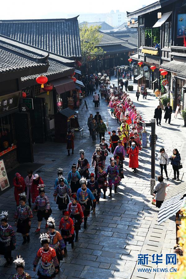 當(dāng)日,貴州省黔東南苗族侗族自治州丹寨縣迎來苗族傳統(tǒng)節(jié)日“祭尤節(jié)”,近千名身著節(jié)日盛裝的苗族群眾與游客齊聚丹寨萬達(dá)小鎮(zhèn),歡度傳統(tǒng)佳節(jié)。