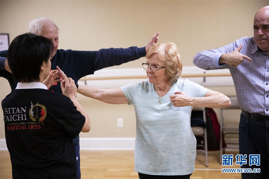 陳思坦的夫人林旭在位于美國紐約長島的一所社區(qū)老年活動中心指導(dǎo)老人練習(xí)太極(11月20日攝)。這里是陳思坦夫婦開設(shè)的一個公益教學(xué)項目。11月的紐約已進(jìn)入初冬,位于美國紐約長島的思坦太極武術(shù)中心依然一片紅火景象,學(xué)員們從5歲的孩童到80多歲的老人,操練著太極拳、太極劍、長拳等武術(shù)招式。這里的主人陳思坦、林旭夫婦,也從早忙到晚,精心指導(dǎo)每一位學(xué)員的一招一式。6歲習(xí)武,22歲成為中國全國冠軍,26歲獲得首個世界冠軍……直到30歲退役,陳思坦在運(yùn)動員生涯中曾獲得過32次國內(nèi)外各類武術(shù)大賽冠軍。36歲那年,懷著以太極拳和中國武術(shù)為媒介向世界推廣中國文化的夢想,陳思坦到美國紐約尋找新的舞臺。經(jīng)過十多年的艱苦打拼,陳思坦夫婦目前在紐約長島、法拉盛和曼哈頓都開設(shè)了長期的課程,思坦太極注冊在編的各個年齡段的學(xué)員近千人,有些“高徒”現(xiàn)在自己也開班授課,將太極推向更多地方。陳思坦夫婦現(xiàn)在思考更多的是如何將太極和武術(shù)推廣給更多的美國人,并讓他們理解其中蘊(yùn)含的平衡、和諧的中國文化理念。他們創(chuàng)辦了紐約太極健身氣功活動日,在各類學(xué)校和社區(qū)開設(shè)太極或者武術(shù)課程,并利用美國的亞太裔文化月和多元文化節(jié)舉行武術(shù)和太極表演和體驗課程,讓更多美國人親眼看到、親身體會中國武術(shù)的魅力。從2011年起,他們還參與創(chuàng)辦了紐約太極大賽,如今已舉行九屆,吸引了美國、加拿大和中國國內(nèi)的隊伍參賽,影響力逐漸擴(kuò)大。新華社記者王迎攝