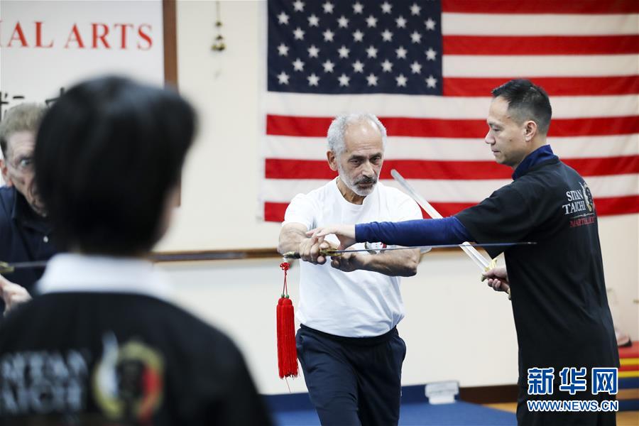 陳思坦在位于美國紐約長島的思坦太極武術(shù)中心指導(dǎo)學(xué)員練習(xí)太極劍(11月20日攝)。11月的紐約已進(jìn)入初冬,位于美國紐約長島的思坦太極武術(shù)中心依然一片紅火景象,學(xué)員們從5歲的孩童到80多歲的老人,操練著太極拳、太極劍、長拳等武術(shù)招式。這里的主人陳思坦、林旭夫婦,也從早忙到晚,精心指導(dǎo)每一位學(xué)員的一招一式。6歲習(xí)武,22歲成為中國全國冠軍,26歲獲得首個世界冠軍……直到30歲退役,陳思坦在運(yùn)動員生涯中曾獲得過32次國內(nèi)外各類武術(shù)大賽冠軍。36歲那年,懷著以太極拳和中國武術(shù)為媒介向世界推廣中國文化的夢想,陳思坦到美國紐約尋找新的舞臺。經(jīng)過十多年的艱苦打拼,陳思坦夫婦目前在紐約長島、法拉盛和曼哈頓都開設(shè)了長期的課程,思坦太極注冊在編的各個年齡段的學(xué)員近千人,有些“高徒”現(xiàn)在自己也開班授課,將太極推向更多地方。陳思坦夫婦現(xiàn)在思考更多的是如何將太極和武術(shù)推廣給更多的美國人,并讓他們理解其中蘊(yùn)含的平衡、和諧的中國文化理念。他們創(chuàng)辦了紐約太極健身氣功活動日,在各類學(xué)校和社區(qū)開設(shè)太極或者武術(shù)課程,并利用美國的亞太裔文化月和多元文化節(jié)舉行武術(shù)和太極表演和體驗課程,讓更多美國人親眼看到、親身體會中國武術(shù)的魅力。從2011年起,他們還參與創(chuàng)辦了紐約太極大賽,如今已舉行九屆,吸引了美國、加拿大和中國國內(nèi)的隊伍參賽,影響力逐漸擴(kuò)大。新華社記者王迎攝