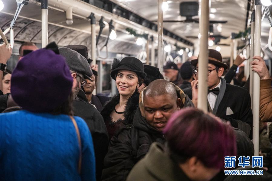 12月8日,在美國紐約,人們搭乘“懷舊專列”。每年感恩節(jié)到新年之間的星期日,紐約地鐵都會用1932年至1977年間使用的老式列車在運(yùn)營的線路上開行特別的“懷舊專列”,人們穿戴舊時服飾專程前來搭乘,體驗時光回溯的奇妙旅程。新華社記者王迎攝
