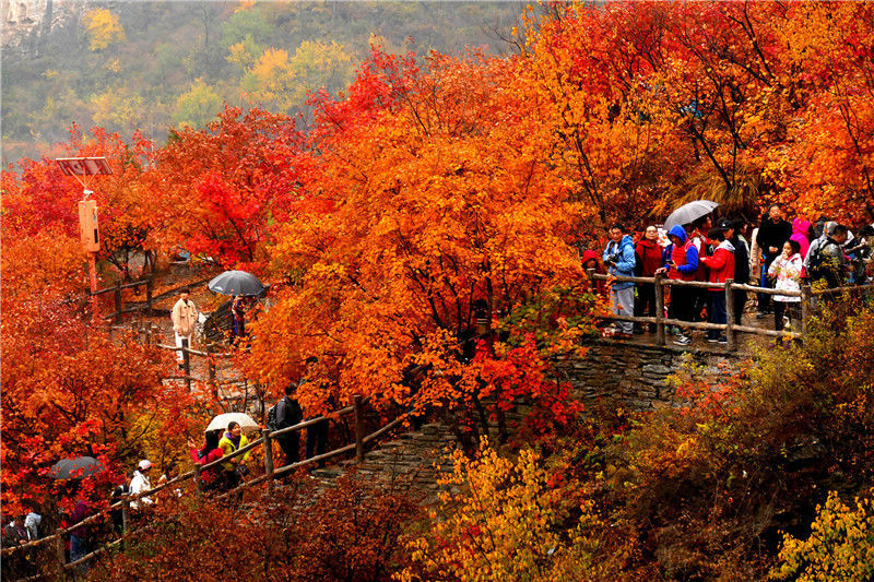 2019年11月3日上午,北京房山區(qū)坡峰嶺紅葉節(jié)現(xiàn)場(chǎng),市民觀賞金秋美景。