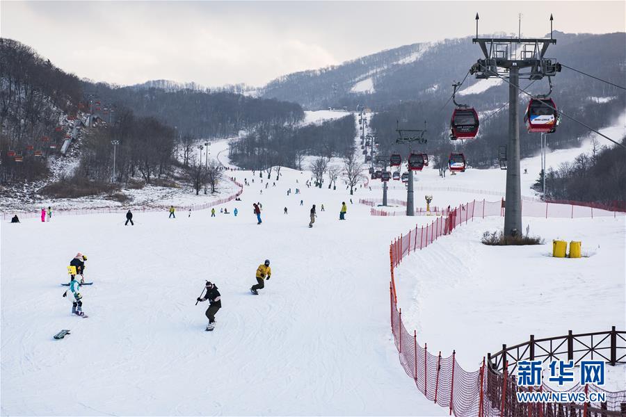 12月13日,滑雪愛好者在吉林市萬科松花湖度假區(qū)滑雪。