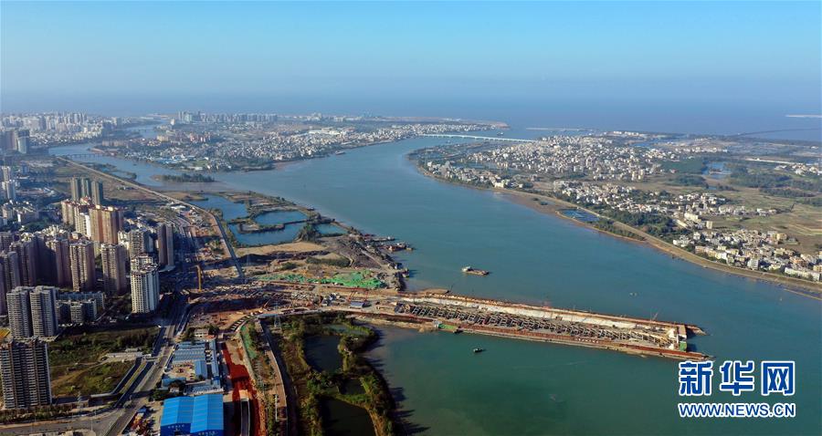 正在施工的??谖拿鳀|越江通道項(xiàng)目(12月14日無人機(jī)拍攝)。 新華社記者 郭程 攝