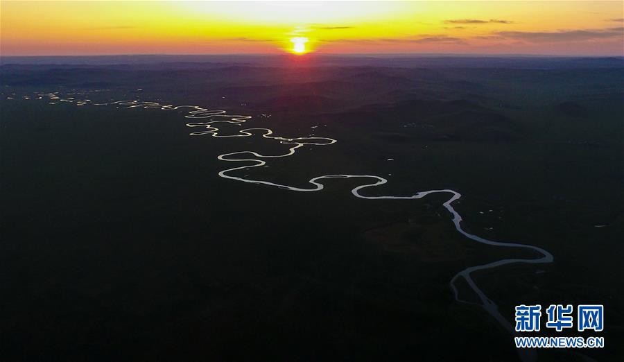 8月26日無人機拍攝的伊敏河。伊敏河流經(jīng)呼倫貝爾草原。新華社記者彭源攝