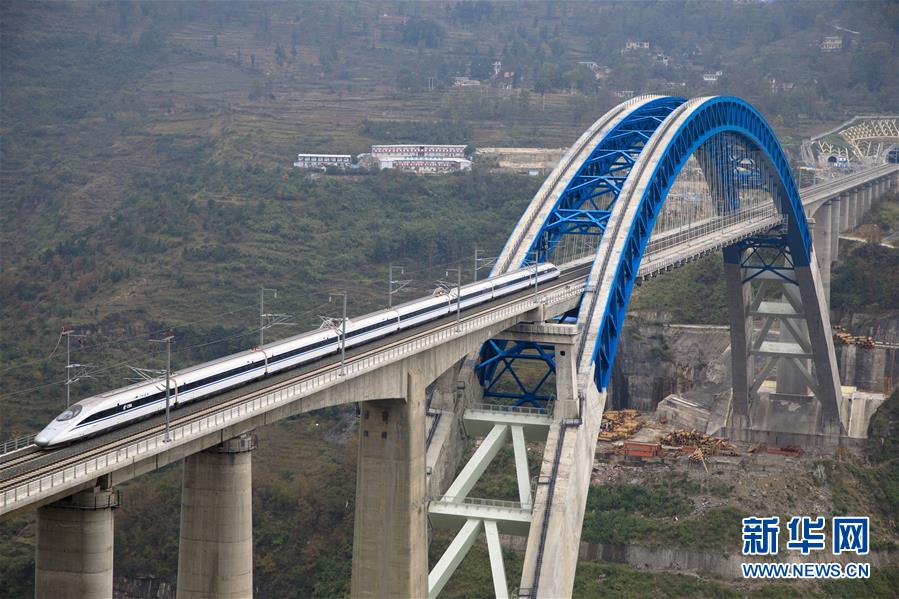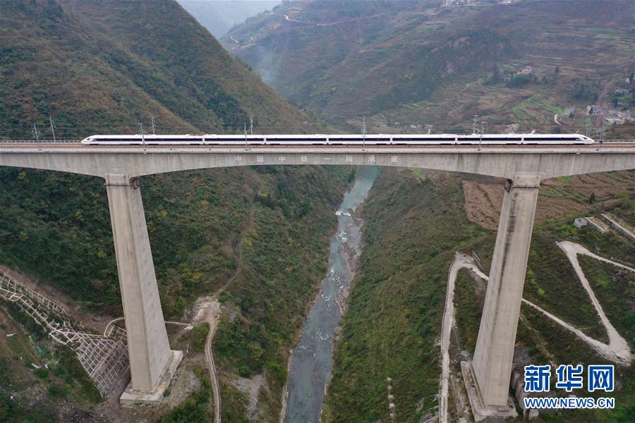 12月2日,一輛試驗(yàn)列車駛過成貴高鐵鴨池河特大橋。當(dāng)日,正在進(jìn)行聯(lián)調(diào)聯(lián)試的成貴高鐵進(jìn)入全線拉通空載模擬運(yùn)行階段,試驗(yàn)列車將在成都到貴陽區(qū)間內(nèi)全線路運(yùn)行。線路全長(zhǎng)650公里的成貴高鐵是我國“八縱八橫”高速鐵路網(wǎng)的重要組成部分,設(shè)計(jì)時(shí)速為250公里。新華社記者劉續(xù)攝