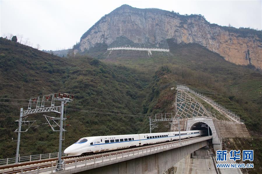 12月16日,一列動(dòng)車組列車從成貴高鐵西溪河大橋上駛過。新華社記者楊文斌攝