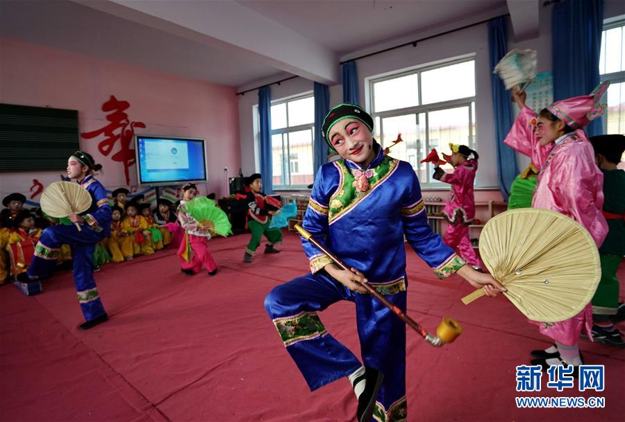 12月19日,河北省灤州市小閆營小學(xué)學(xué)生在排練地秧歌。