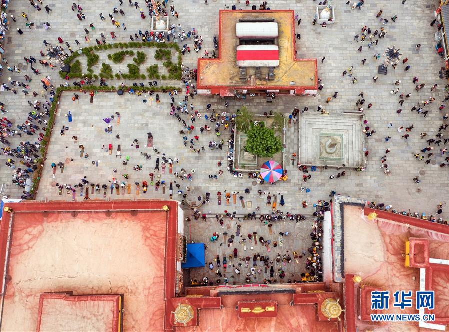 8月10日無人機(jī)拍攝的布達(dá)拉宮廣場一景。新華社記者王益亮攝