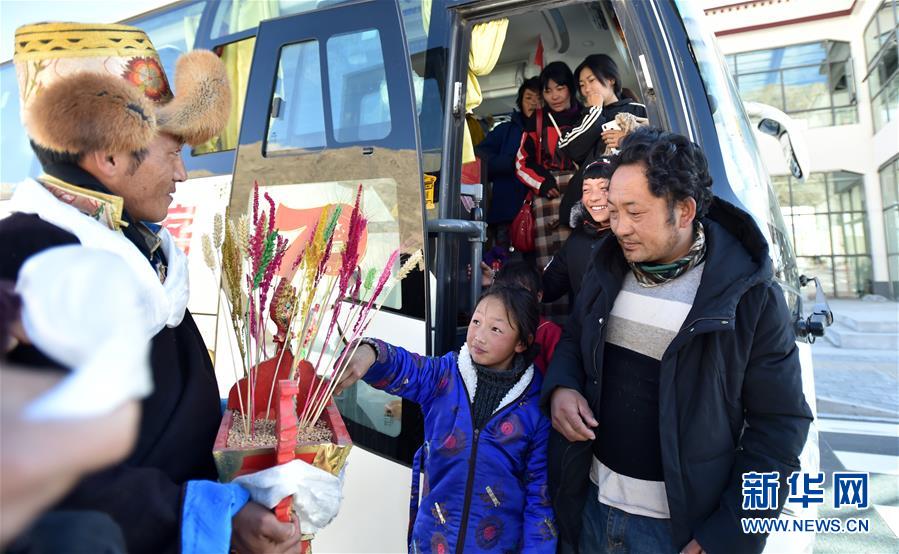 12月23日,貢嘎縣群眾迎接新來的村民。新華社記者覺果攝
