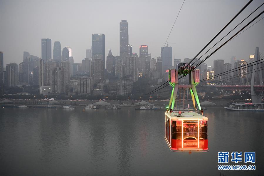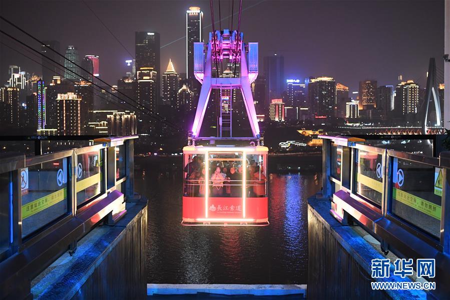 12月23日,“長(zhǎng)江索道”在重慶夜空中運(yùn)行。新華社記者唐奕攝