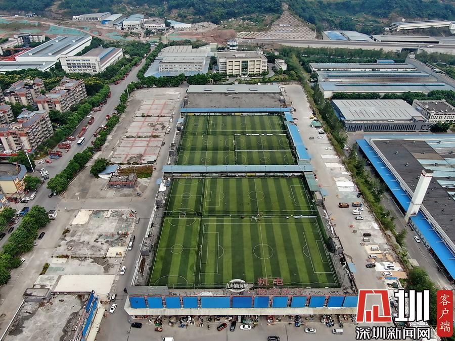 2019年9月4日,重慶,網(wǎng)紅重慶又現(xiàn)魔幻建筑。重慶一樓頂現(xiàn)“空中足球場”,形成了一道立體壯觀景象。