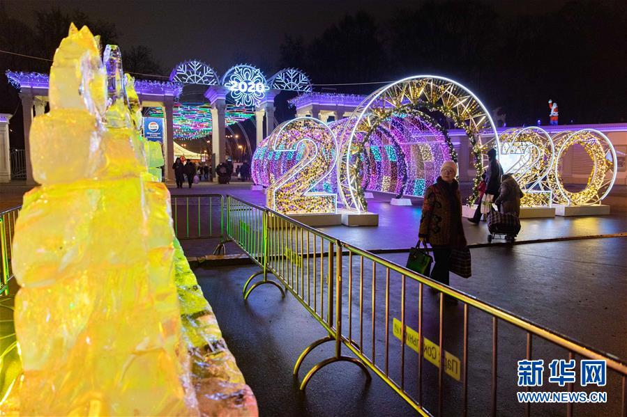 12月24日,在俄羅斯首都莫斯科,人們參觀冰雕藝術(shù)展。 新華社記者 白雪騏 攝