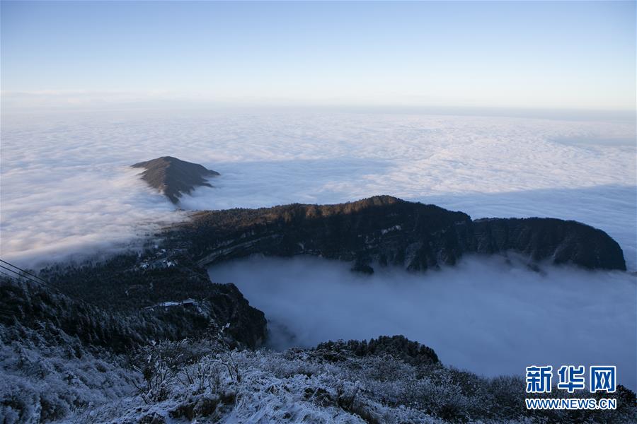 這是12月28日在四川省峨眉山金頂拍攝的景色。時(shí)值冬日,峨眉山銀裝素裹、宛如仙境。新華社記者李夢馨攝
