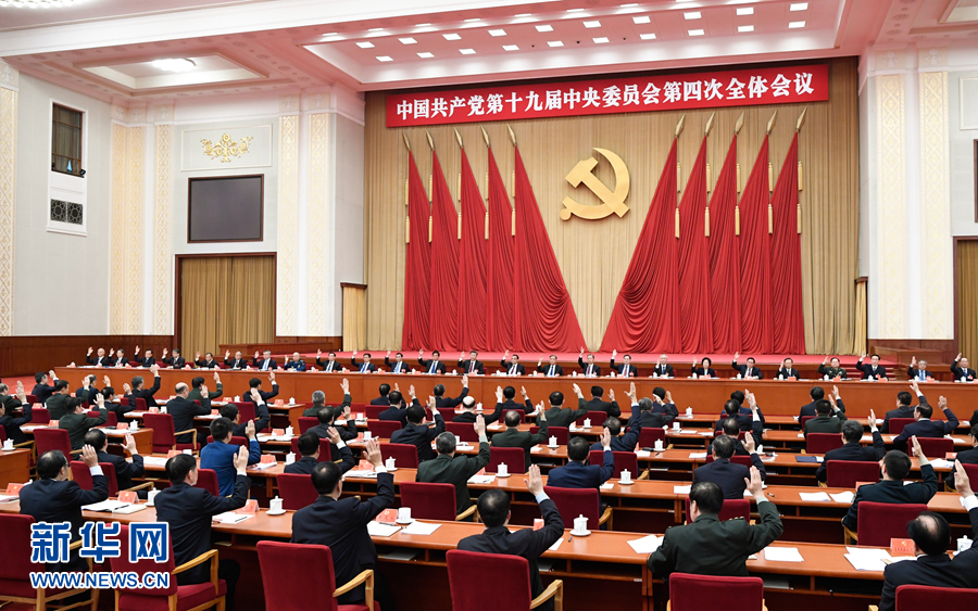 10月28日至31日,中共十九屆四中全會在北京召開。會議審議通過《中共中央關(guān)于堅持和完善中國特色社會主義制度、推進國家治理體系和治理能力現(xiàn)代化若干重大問題的決定》,全面總結(jié)中國特色社會主義制度建設(shè)的歷史性成就,集中概括中國特色社會主義制度和國家治理體系的顯著優(yōu)勢,深刻闡述支撐中國特色社會主義制度的根本制度、基本制度、重要制度,明確了堅持和完善中國特色社會主義制度、推進國家治理體系和治理能力現(xiàn)代化的總體要求、總體目標(biāo)和重點任務(wù)。