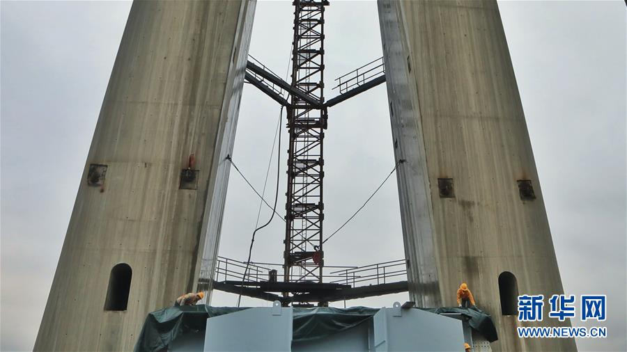 2019年1月7日,建設者在世界第一高混凝土橋塔上建設平塘特大橋。新華社記者歐東衢攝
