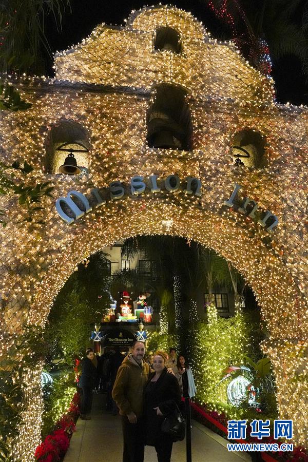 12月29日,人們在美國加利福尼亞州里弗賽德燈光節(jié)上欣賞彩燈。第27屆里弗賽德燈光節(jié)流光璀璨,洋溢著濃厚的新年氣氛,吸引眾多游客前來觀看。 新華社記者李穎攝