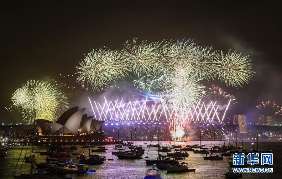 當(dāng)?shù)貢r(shí)間2020年1月1日,澳大利亞悉尼歌劇院和海港大橋畔燃放煙花,慶祝2020年的到來。新華社記者白雪飛攝