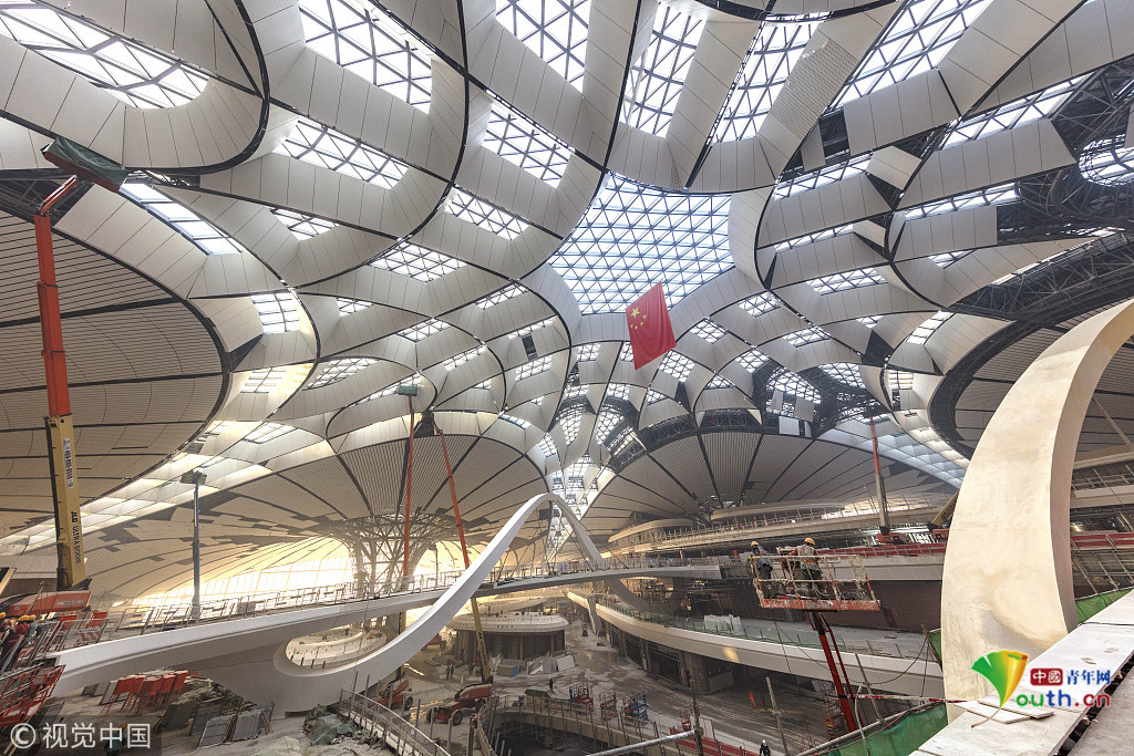 2019年5月24日,北京,新機(jī)場(chǎng)建設(shè)距離竣工時(shí)間還有37天,工程進(jìn)入倒計(jì)時(shí)。機(jī)場(chǎng)開(kāi)建至今不到5年時(shí)間,機(jī)場(chǎng)施工工程將于6月底竣工,將于9月底投入運(yùn)營(yíng),該機(jī)場(chǎng)有望成為世界上規(guī)模最大的機(jī)場(chǎng)之一。任振朝/千龍圖像/視覺(jué)中國(guó)