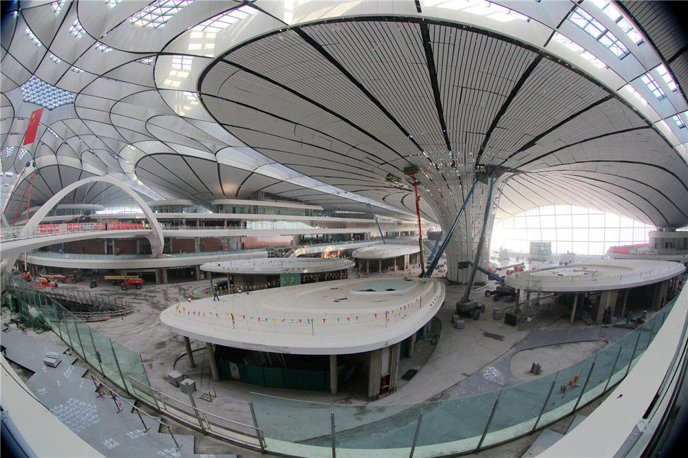 2019年1月20日,北京,探訪北京大興國(guó)際機(jī)場(chǎng)航站樓,建設(shè)工地正在如火如荼地有條不紊地建設(shè)之中。丁幫學(xué)/千龍圖像/視覺(jué)中國(guó)