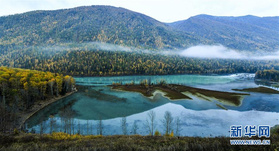 9月25日無(wú)人機(jī)拍攝的喀納斯景區(qū)風(fēng)光。新華社記者王菲攝