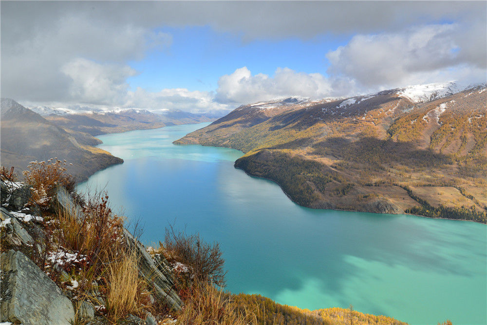 新疆維吾爾自治區(qū)阿勒泰地區(qū)。喀納斯湖,面積45.75平方公里,平均水深120米,最深處達(dá)到188.5米,蓄水量達(dá)53.8億立方米。外形呈月牙,被推測(cè)為古冰川強(qiáng)烈運(yùn)動(dòng)阻塞山谷積水而成。李二慶/視覺中國(guó)