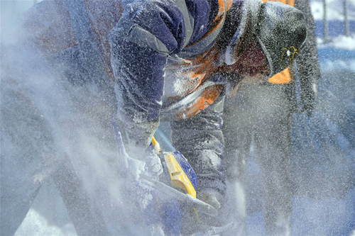 2019年1月23日,在黑龍江省漠河市嫩林線674公里處,加格達(dá)奇工務(wù)段橋隧工杜志彪在進(jìn)行涵洞除冰作業(yè)。新華社記者才揚(yáng)攝