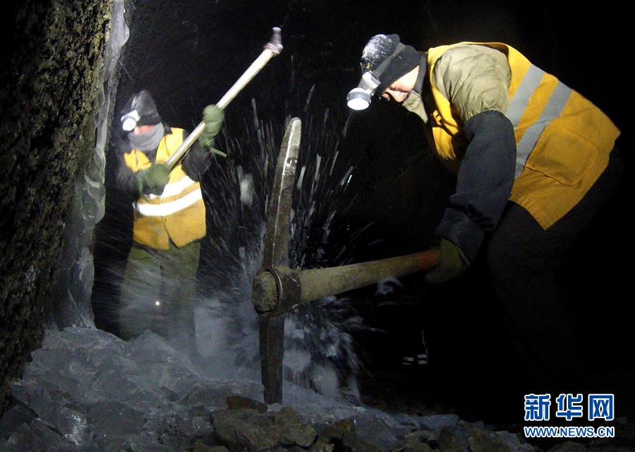 1月7日,在加格達(dá)奇工務(wù)段西羅奇嶺二號(hào)隧道,西羅奇維修工隊(duì)工作人員進(jìn)行隧道除冰作業(yè)。新華社記者王毓國(guó)攝