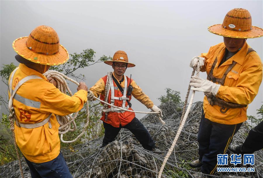 1月14日,百色工務(wù)段白水河橋隧工區(qū)班組工長王勇(右一)和同事在處理危石。在中國鐵路南寧局集團公司百色工務(wù)段白水河橋隧工區(qū),有一個由14名工人組成的班組。他們常年像“爬山虎”一樣行走攀爬在地形險峻、云霧繚繞的高山上,負責(zé)南昆鐵路轄區(qū)路段的搜山掃石工作,清除一切可能危害鐵路行車安全的因素,保障旅客出行安全。新華社記者張愛林攝