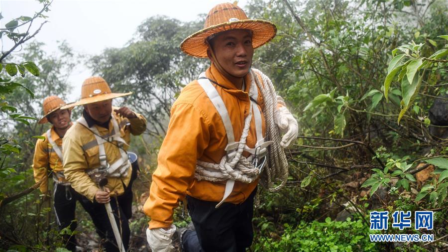 1月14日,百色工務(wù)段白水河橋隧工區(qū)班組成員在搜山掃石。在中國鐵路南寧局集團公司百色工務(wù)段白水河橋隧工區(qū),有一個由14名工人組成的班組。他們常年像“爬山虎”一樣行走攀爬在地形險峻、云霧繚繞的高山上,負責(zé)南昆鐵路轄區(qū)路段的搜山掃石工作,清除一切可能危害鐵路行車安全的因素,保障旅客出行安全。新華社記者張愛林攝