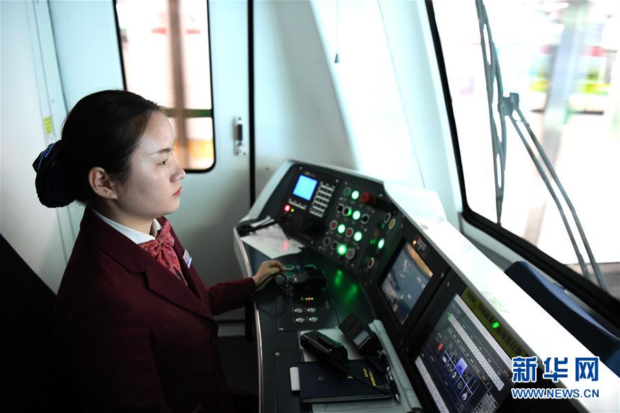 劉慧君在南寧軌道交通1號線上駕車行駛(1月16日攝)。