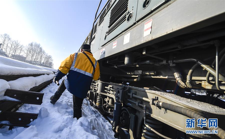 林海間的“送水小火車”調(diào)車員對“送水小火車”進(jìn)行出行前的檢查作業(yè)(1月17日攝)。新華社記者許暢攝