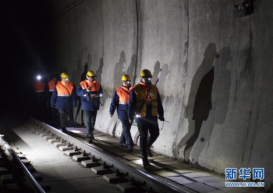 1月6日,在加格達(dá)奇工務(wù)段西羅奇嶺二號(hào)隧道,西羅奇維修工隊(duì)工作人員進(jìn)行維修作業(yè)。新華社記者才揚(yáng)攝