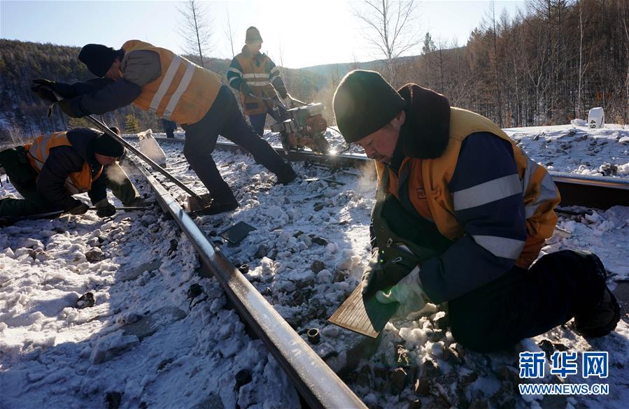 1月8日,西羅奇維修工隊(duì)工作人員在嫩林線497公里處進(jìn)行維修作業(yè)。新華社記者王毓國攝