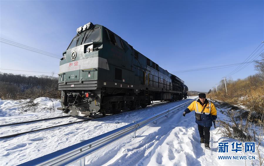 1月13日,白音庫倫綜合維修車間線路養(yǎng)護(hù)職工前往作業(yè)點(diǎn)。新華社記者劉磊攝