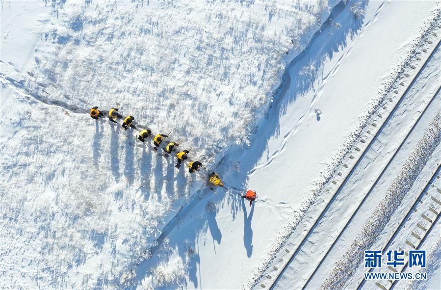 1月13日,白音庫倫綜合維修車間的職工來到作業(yè)點(diǎn)準(zhǔn)備工作(無人機(jī)照片)。新華社記者劉磊攝