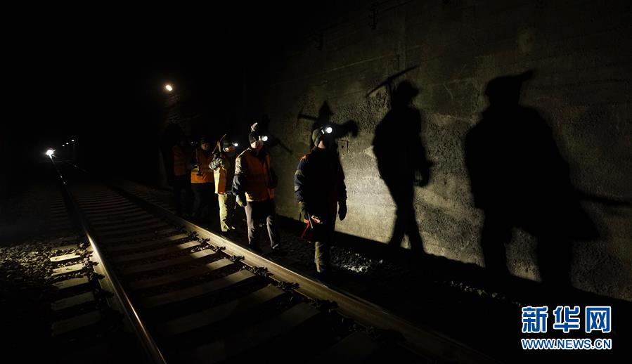 1月9日,在加格達奇工務(wù)段西羅奇嶺二號隧道,西羅奇維修工隊工作人員進行隧道除冰作業(yè)后準備返回工隊住所。新華社記者王毓國攝