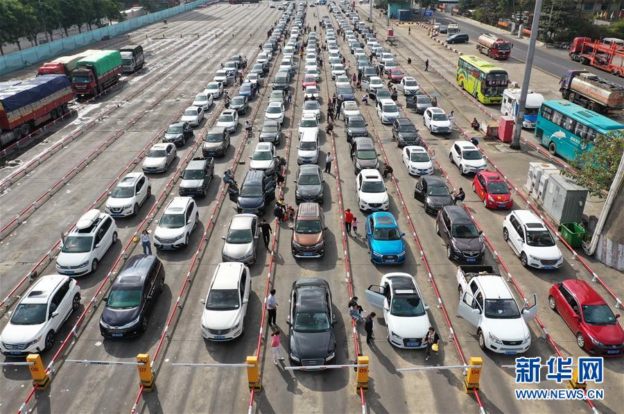 1月19日,車輛在??谛阌⒏圯喍纱a頭等待登船(無人機(jī)照片)。 當(dāng)日是春運(yùn)第10天,瓊州海峽進(jìn)入春運(yùn)進(jìn)出港高峰。據(jù)海南港航控股有限公司數(shù)據(jù),截至18日,海口市兩港口春運(yùn)累計(jì)進(jìn)出港旅客54.89萬人次,進(jìn)出港車輛13.32萬輛次。18日單日進(jìn)出港旅客9.75萬人次,同比增長(zhǎng)43.9%,進(jìn)出港車輛2.3萬輛車次,同比增長(zhǎng)45.5%。 新華社記者 郭程 攝