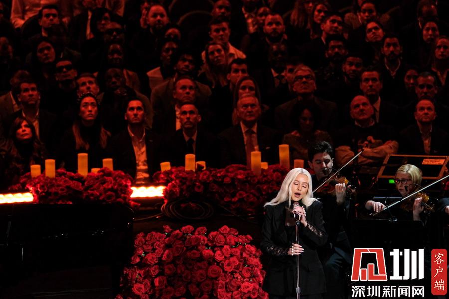 美國(guó)洛杉磯,NBA巨星科比-布萊恩特與女兒吉安娜追思會(huì)于洛杉磯湖人主場(chǎng)斯臺(tái)普斯中心舉行。