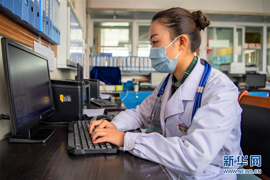 在西藏自治區(qū)人民醫(yī)院實(shí)習(xí)的西藏大學(xué)醫(yī)學(xué)院2017級(jí)內(nèi)科學(xué)專(zhuān)業(yè)研究生張澤鑫在工作中(2月23日攝)。新華社記者孫非攝