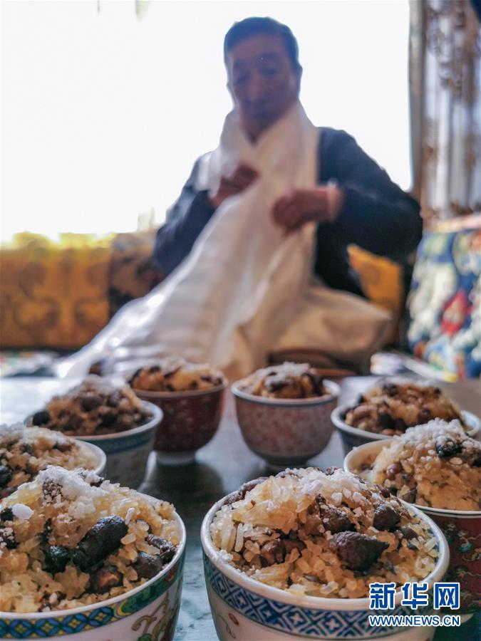拉薩市民在家中品嘗藏族傳統(tǒng)新年食品(2月24日攝)。新華社記者普布扎西攝