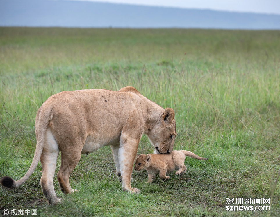 英國野生動物攝影師Paul Goldstein在肯尼亞的馬賽馬拉拍到了一頭小獅子被媽媽教訓(xùn)的場面。