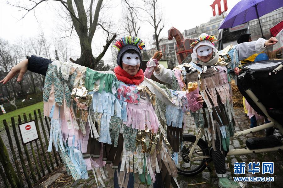 2月27日,人們在比利時布魯塞爾參加狂歡節(jié)活動。 新華社記者鄭煥松攝