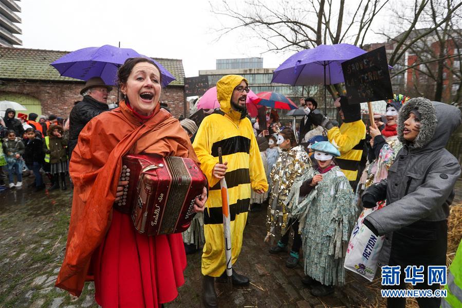 2月27日,人們?cè)诒壤麜r(shí)布魯塞爾參加狂歡節(jié)活動(dòng)。 新華社記者鄭煥松攝